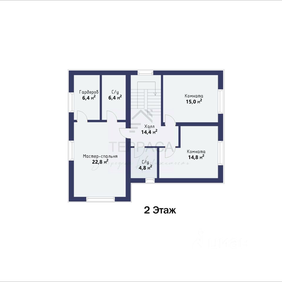 Планировка: 1 этаж - кухня-гостиная с выходом на крытую террасу, изолированная комната, котельная, с/у, большая прихожая с зоной гардероба. 2 этаж - 3 изолированные комнаты (одна из них - мастер-спальня с отдельной гардеробной и с/у), холл, с/у.