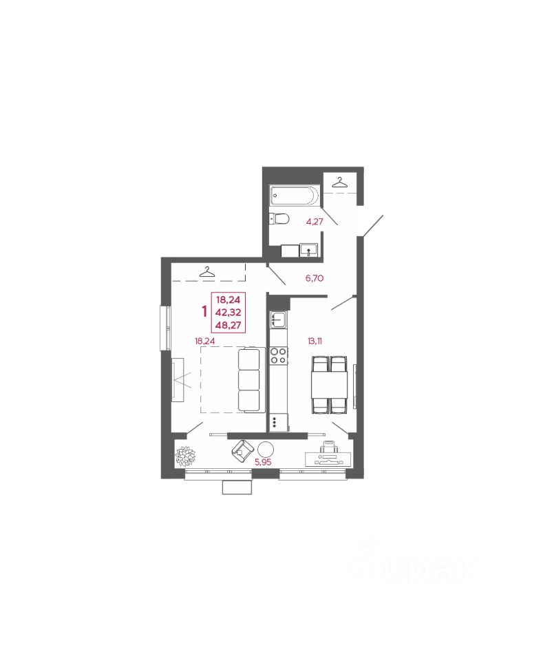 Общая площадь48,27 м2