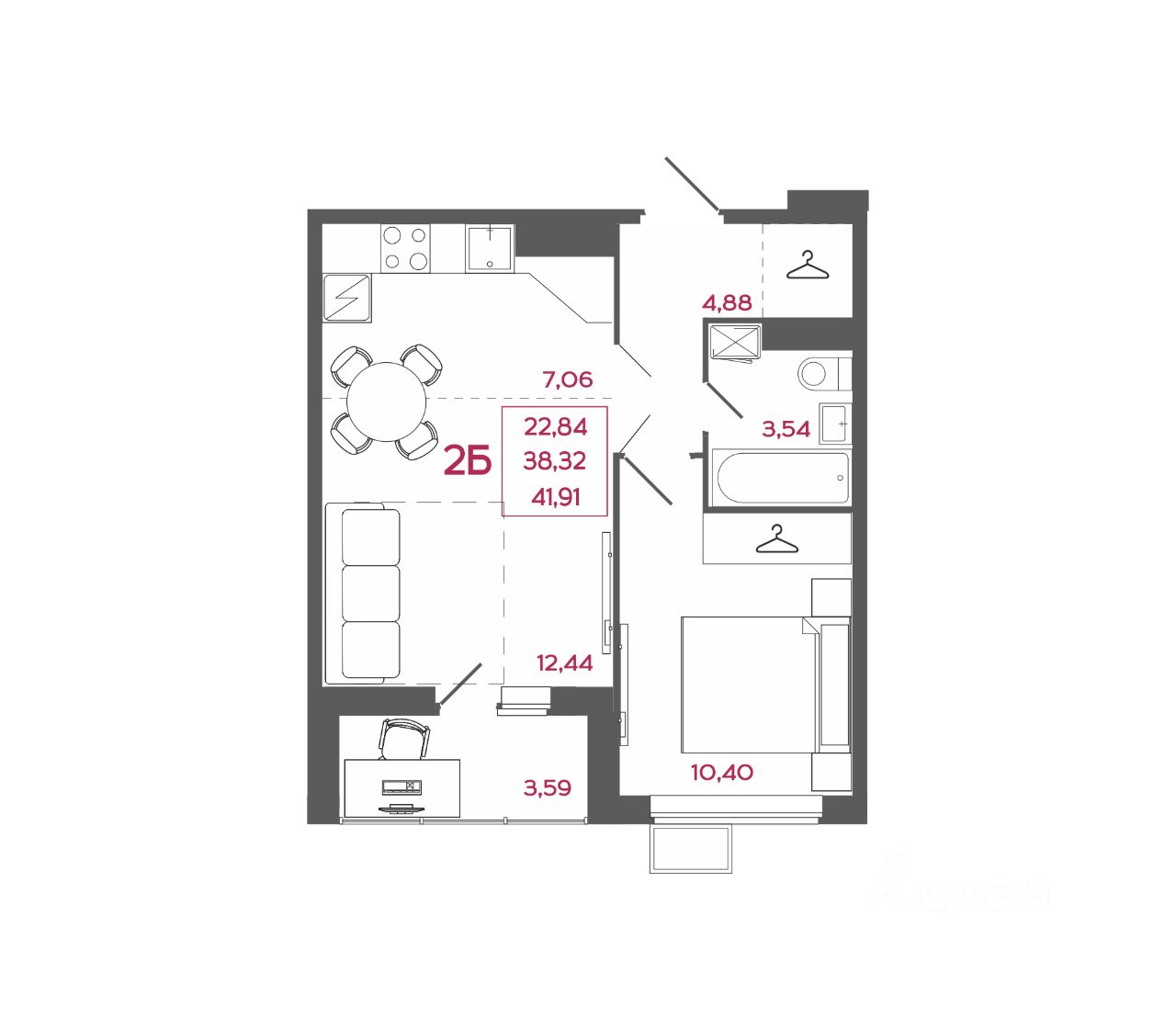 Общая площадь41,91 м2