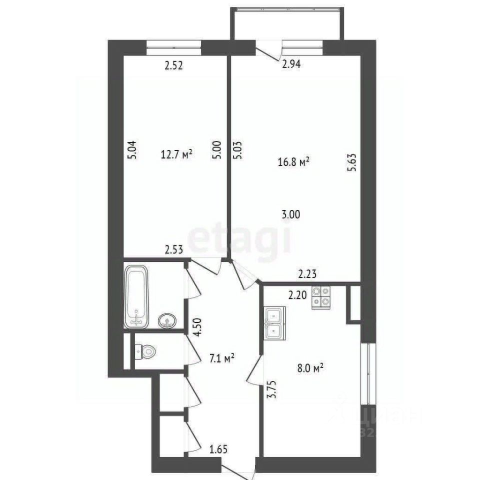 - Общая площадь 49.8 м2 - Кухня 8 м2 - Санузел раздельный