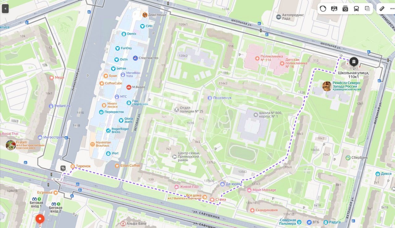 ИНФРАСТРУКТУРА: В пешей доступности: - Транспортная доступность: рядом с домом остановки общественного транспорта, ЖД станция Яхтенная, выезд на ЗСД, 12 мин. пешком до ст.м. Беговая. - ТК МЕРКУРИЙ, ТЦ Атлантик Сити. - 5 минут пешком до поликлиники, детской поликлиники, школы, детского сада. - Зоны отдыха: 15 минут пешком до парка 300-летия Санкт-Петербурга, сквера Каменный нос. - в пешей доступности сетевые продуктовые магазины, аптеки, салоны красоты, кафе, гипермаркеты, автосервисы и многое другое.