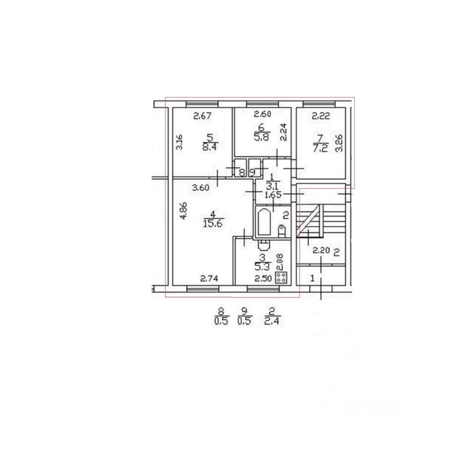 Дом 1968 г.п., панель, 1/5 этаж, общая площадь 48,8 кв.м, жилая площадь 37,1 кв.м, 4 комнаты: 5,8+8,4+7,2+15,6 кв.м, площадь кухни 5,3 кв.м. Санузел совмещенный.