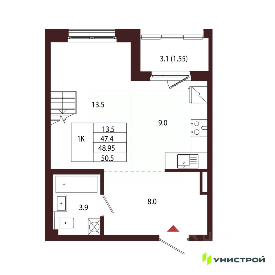 Общая площадь48,95 м2