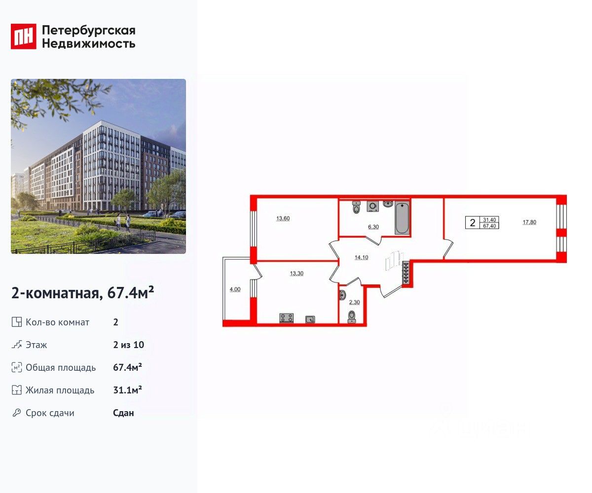 Продается просторная 2-комнатная квартира от застройщика в жилом комплексе ''Svetlana Park'' в современном Выборгском районе.