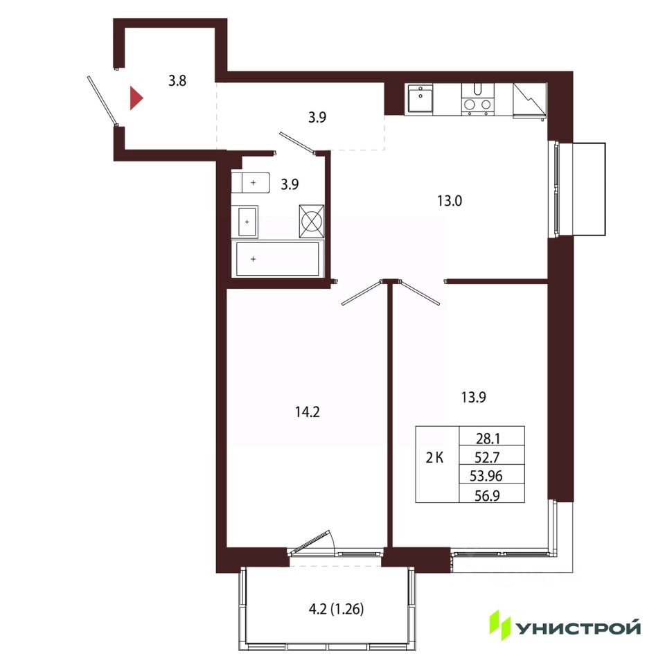 Общая площадь53,96 м2