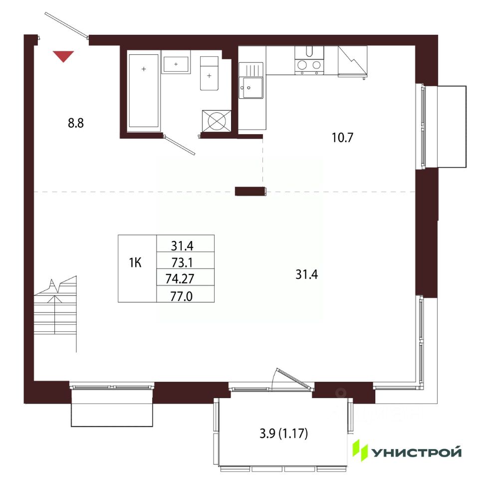 Общая площадь74,27 м2