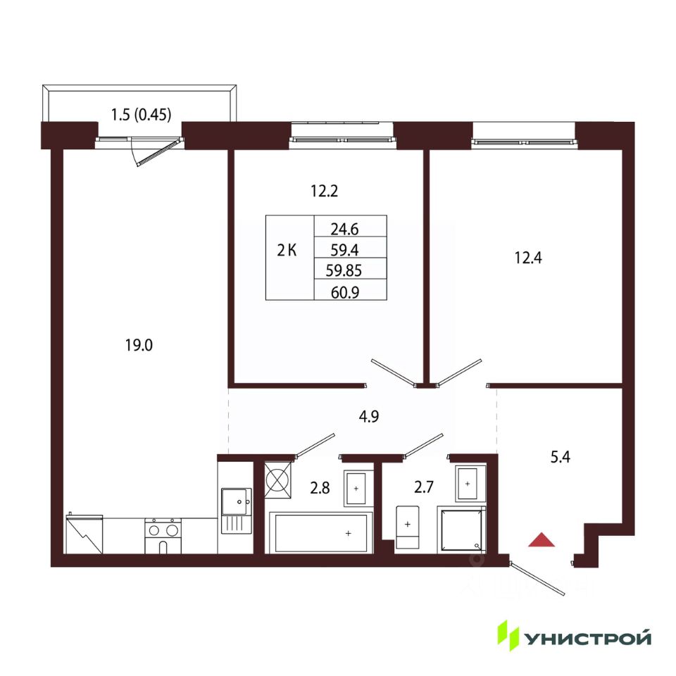Общая площадь59,85 м2