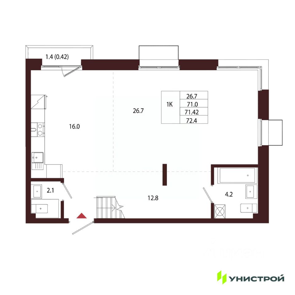 Общая площадь71,42 м2