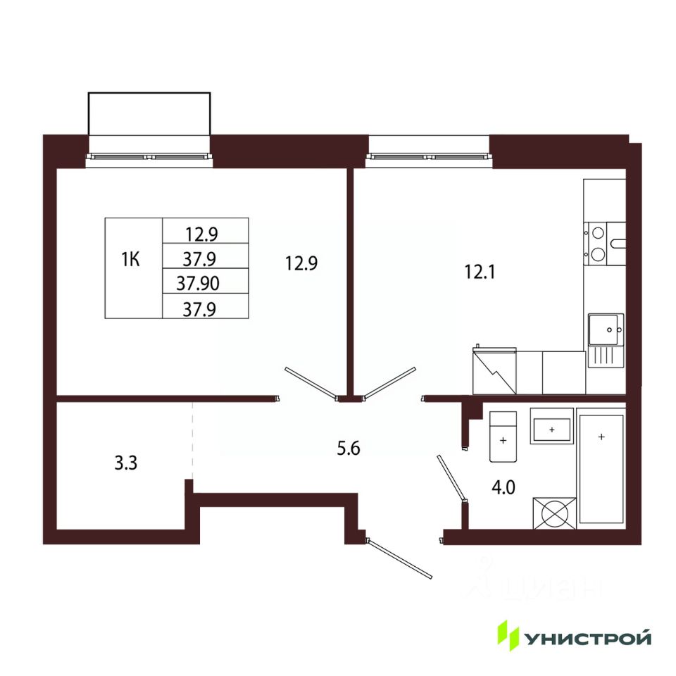 Общая площадь37,9 м2