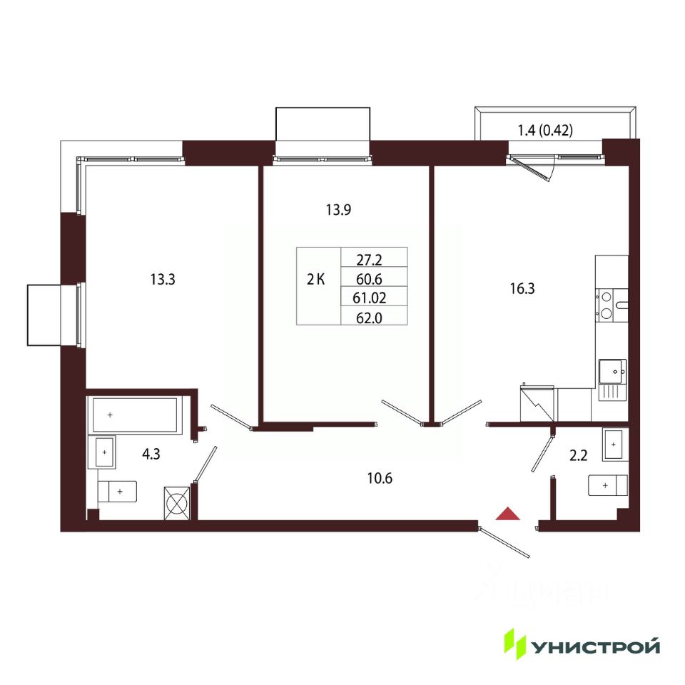 Общая площадь61,02 м2