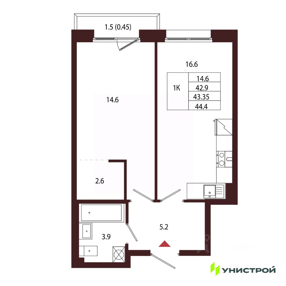 Общая площадь43,35 м2