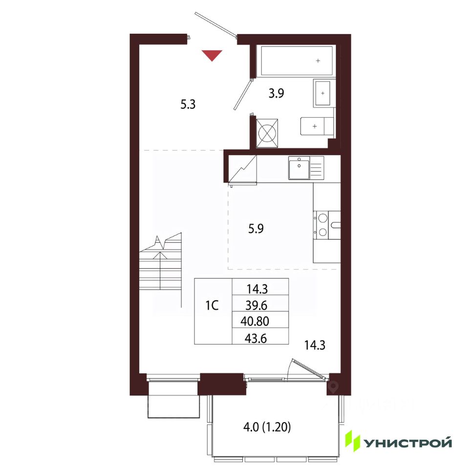 Общая площадь40,8 м2