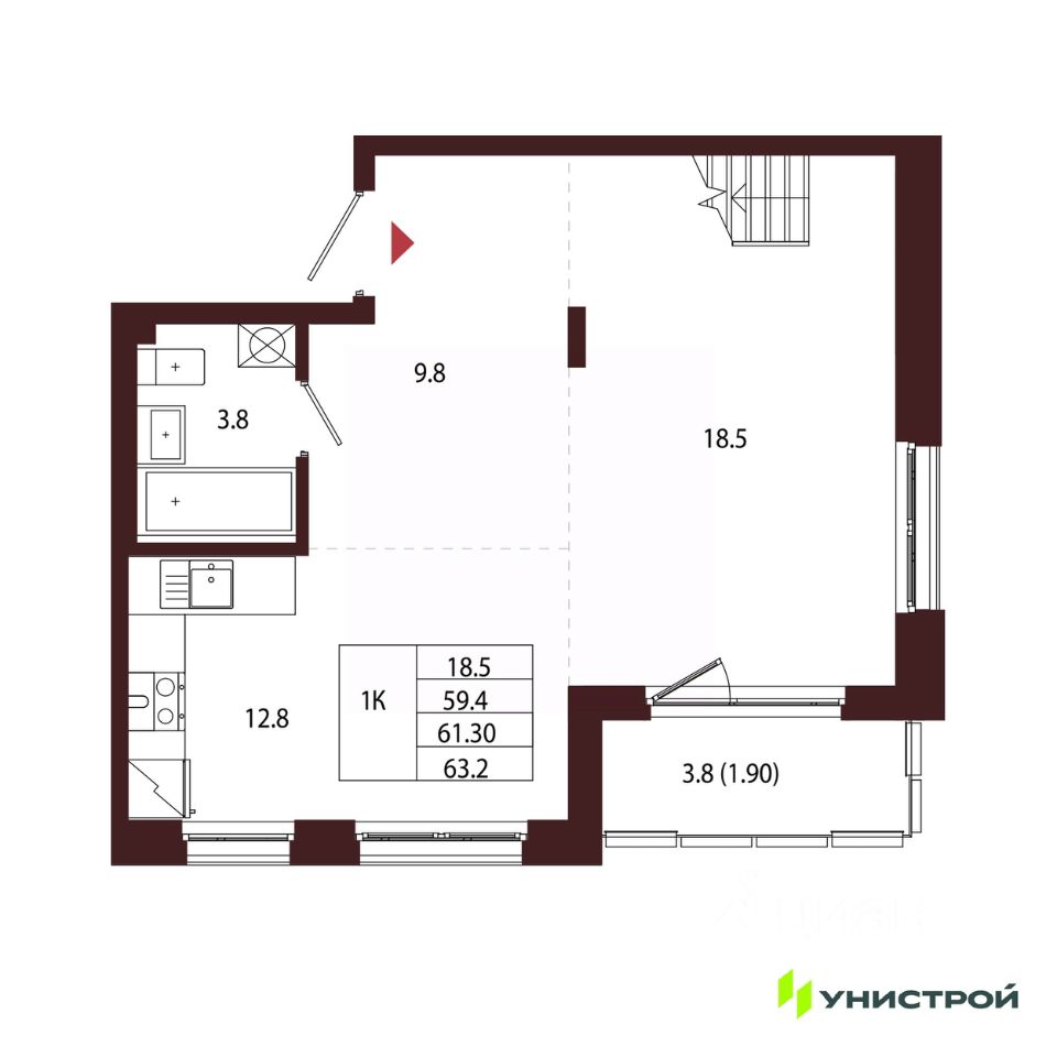 Общая площадь61,3 м2