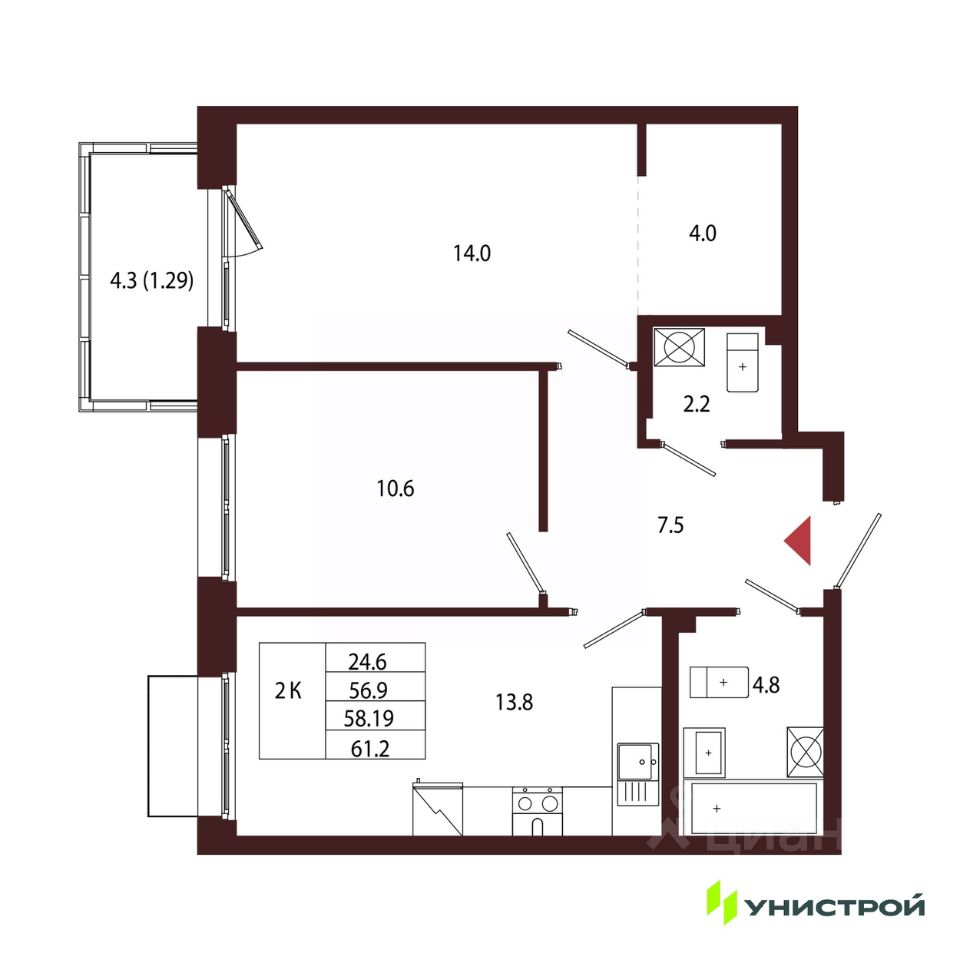 Общая площадь58,19 м2