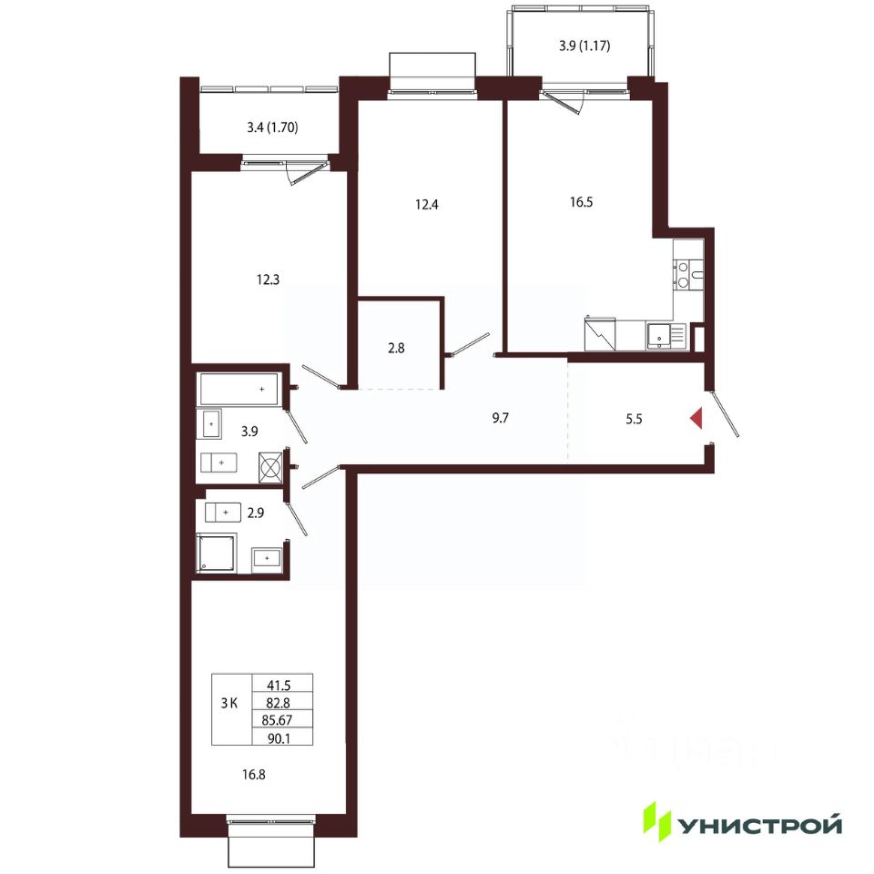 Общая площадь85,67 м2