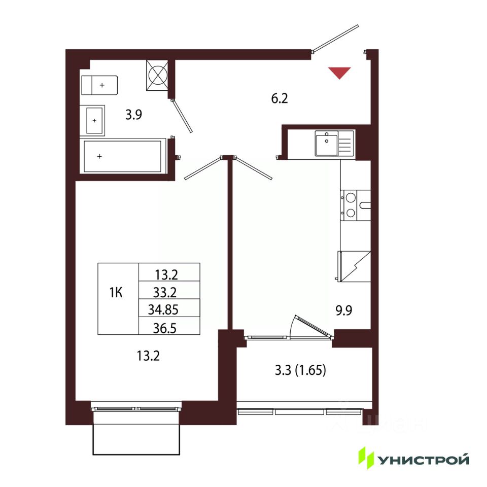 Общая площадь34,85 м2