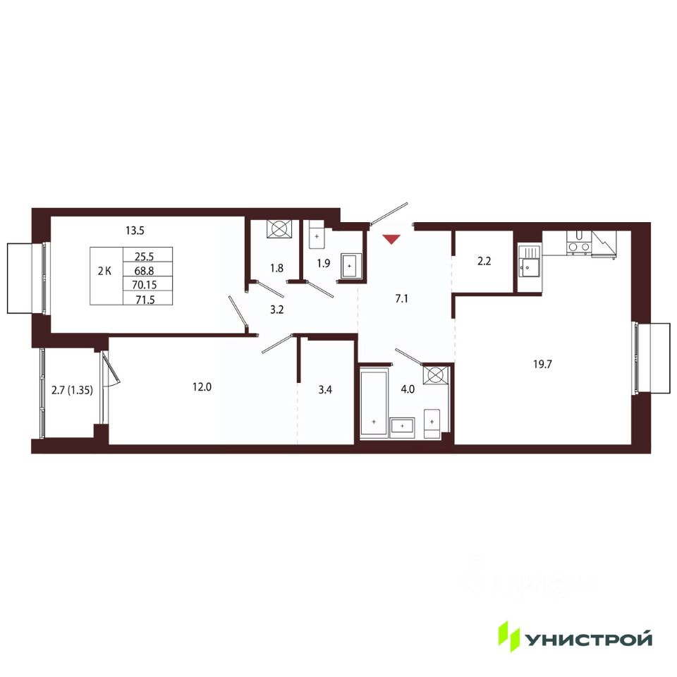 Общая площадь70,15 м2