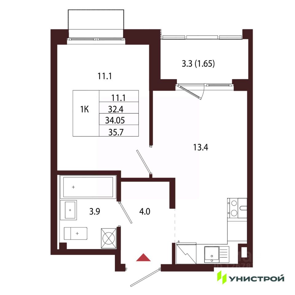 Общая площадь34,05 м2