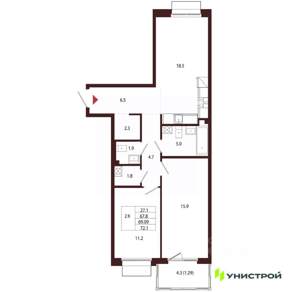 Общая площадь69,09 м2