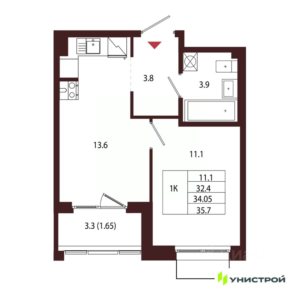 Общая площадь34,05 м2