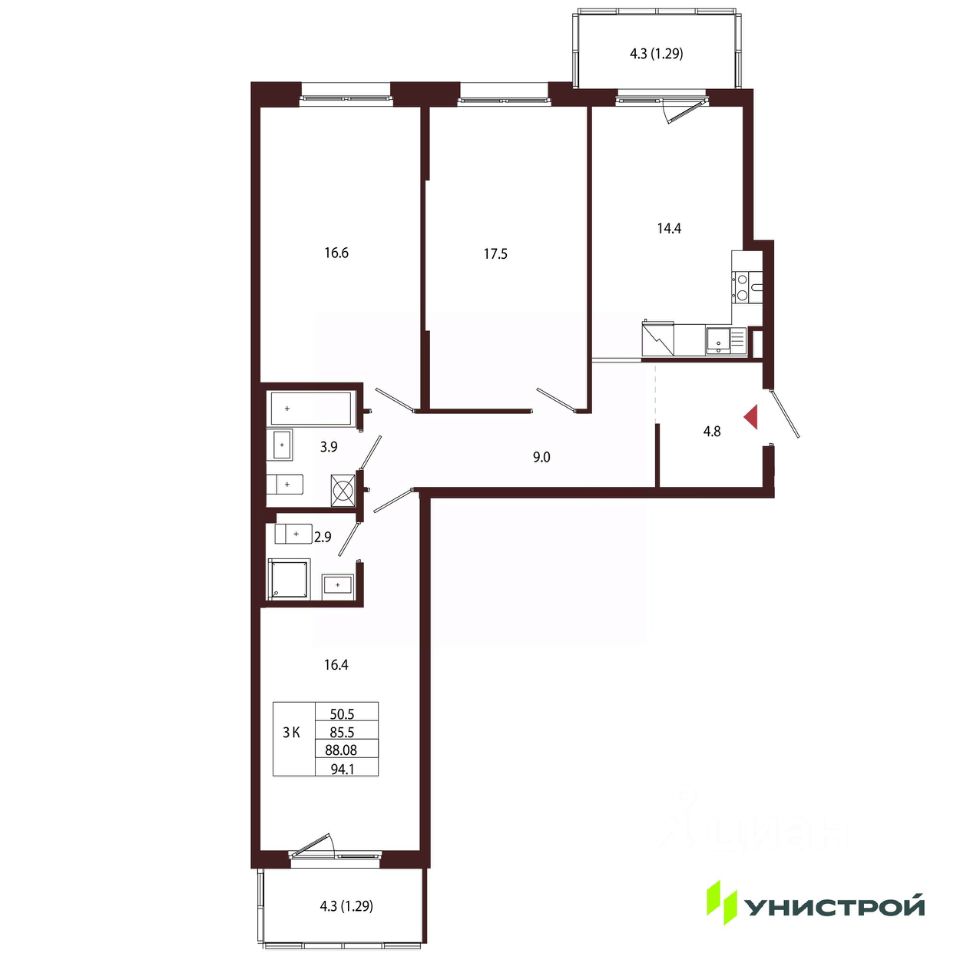 Общая площадь88,08 м2