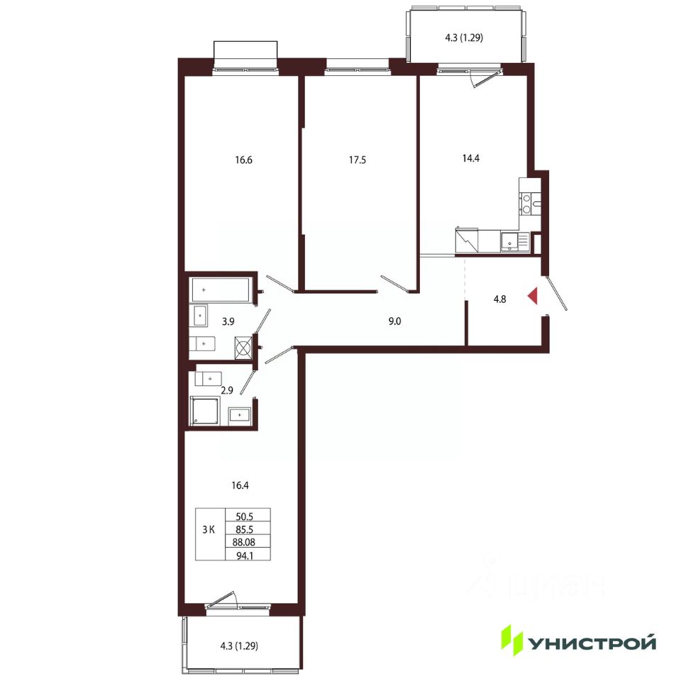 Общая площадь88,08 м2