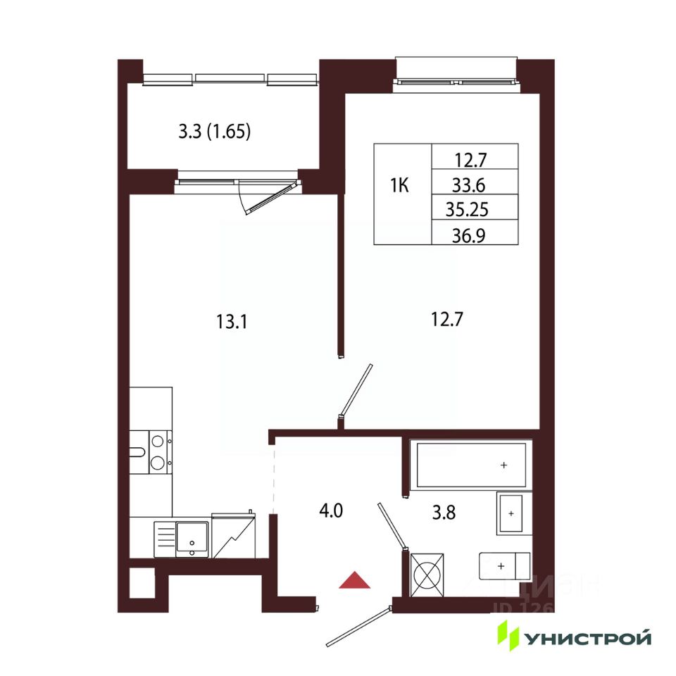 Общая площадь35,25 м2