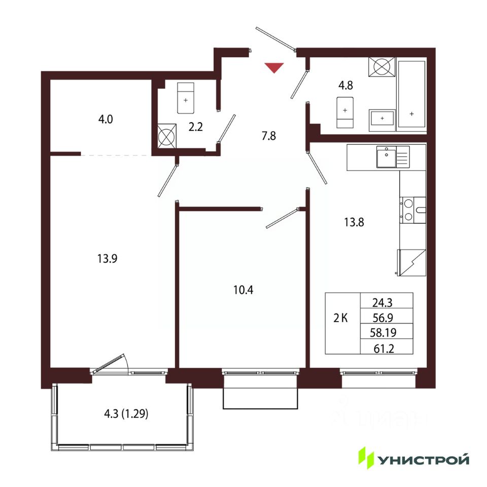 Общая площадь58,19 м2