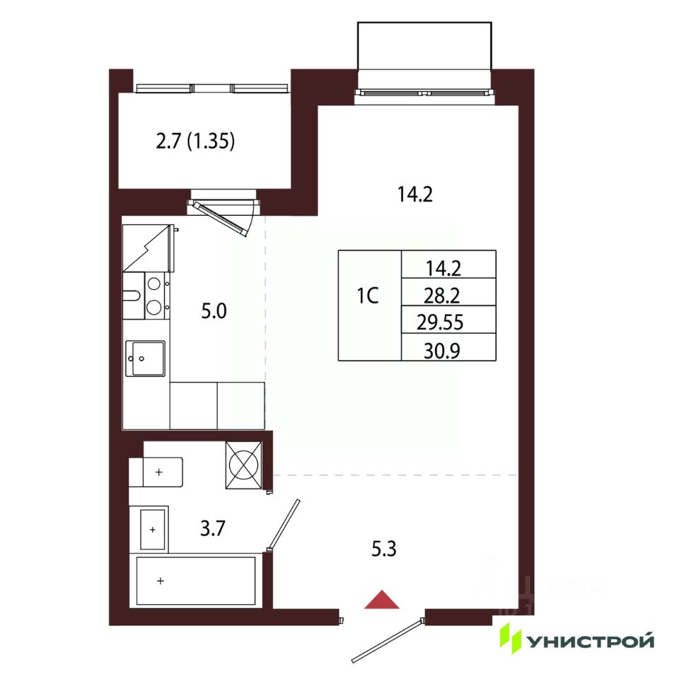 Общая площадь29,55 м2