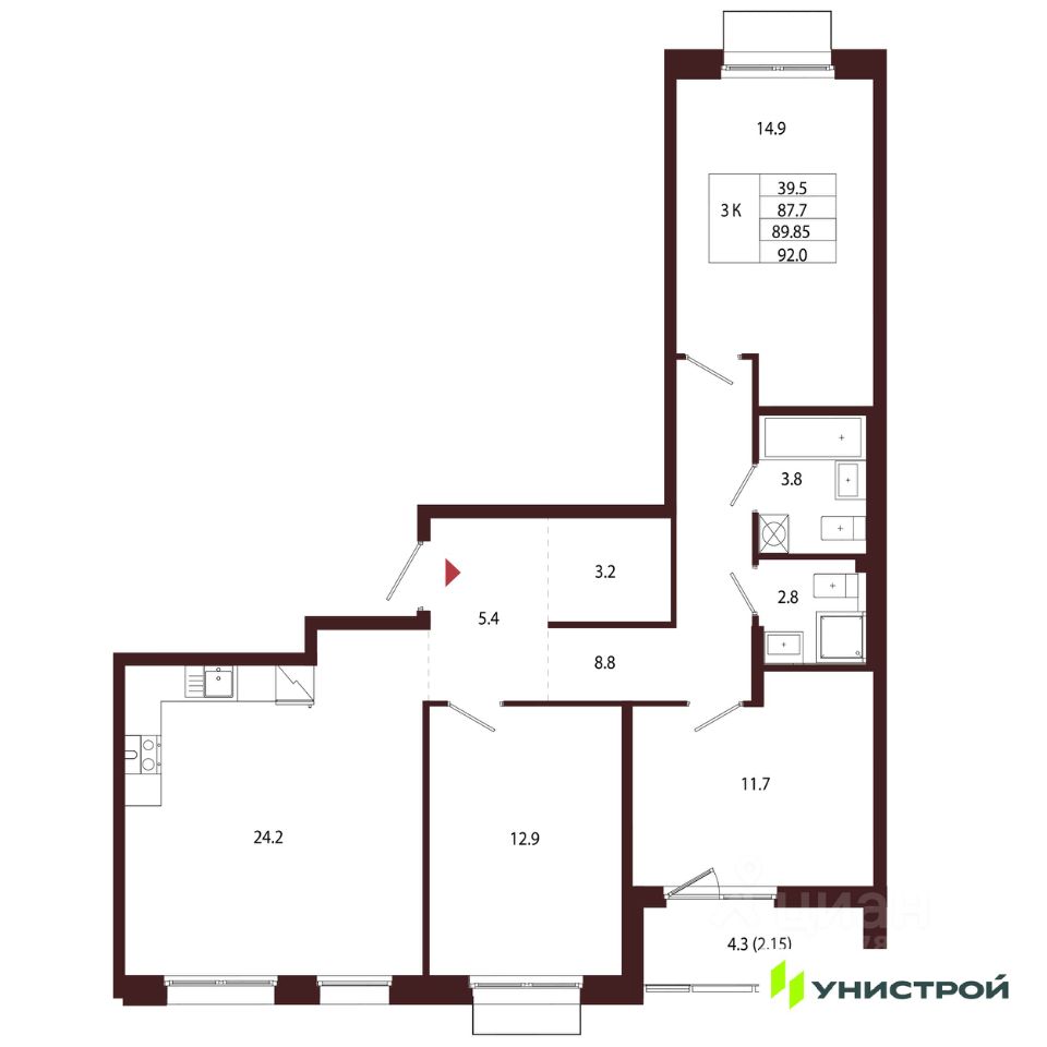 продам 3-к квартира27 892 000 ₽