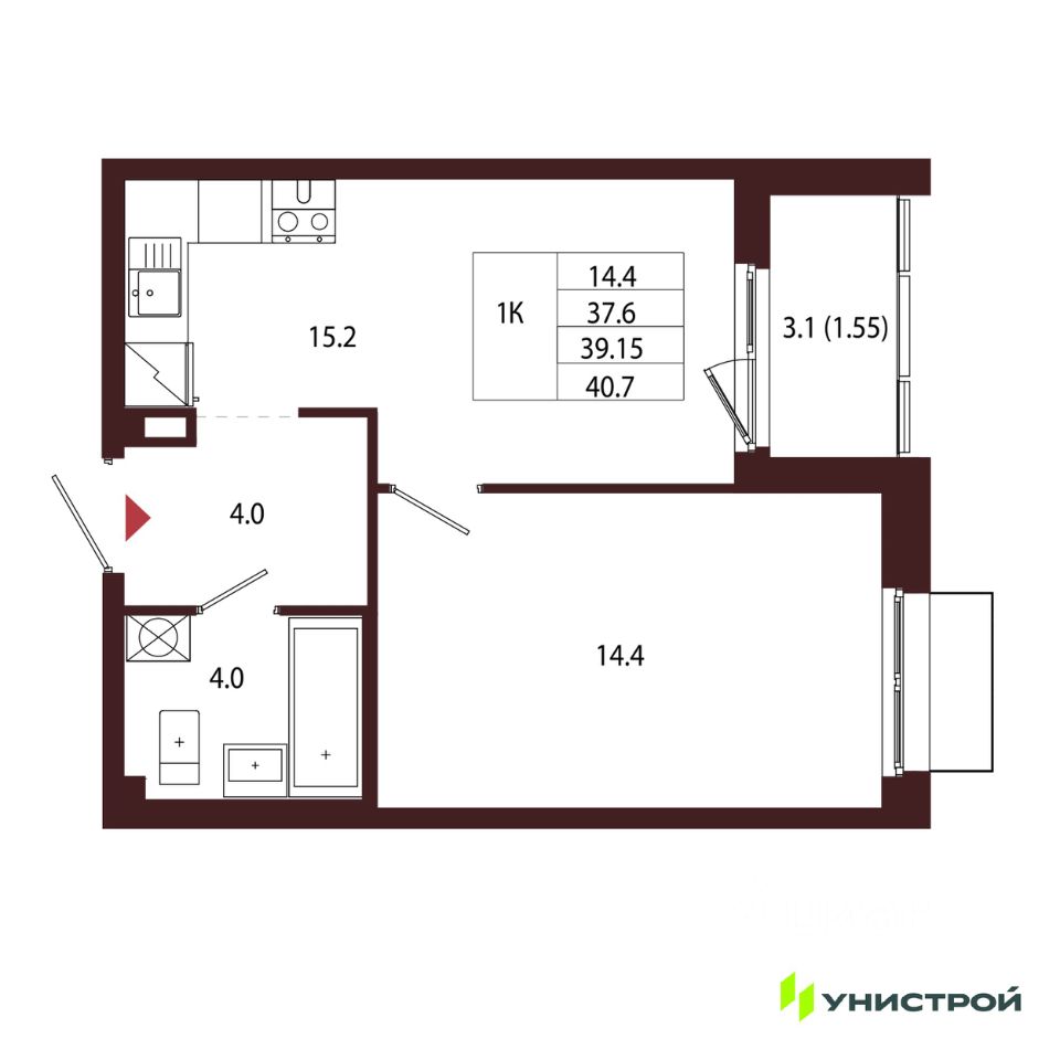Общая площадь39,15 м2