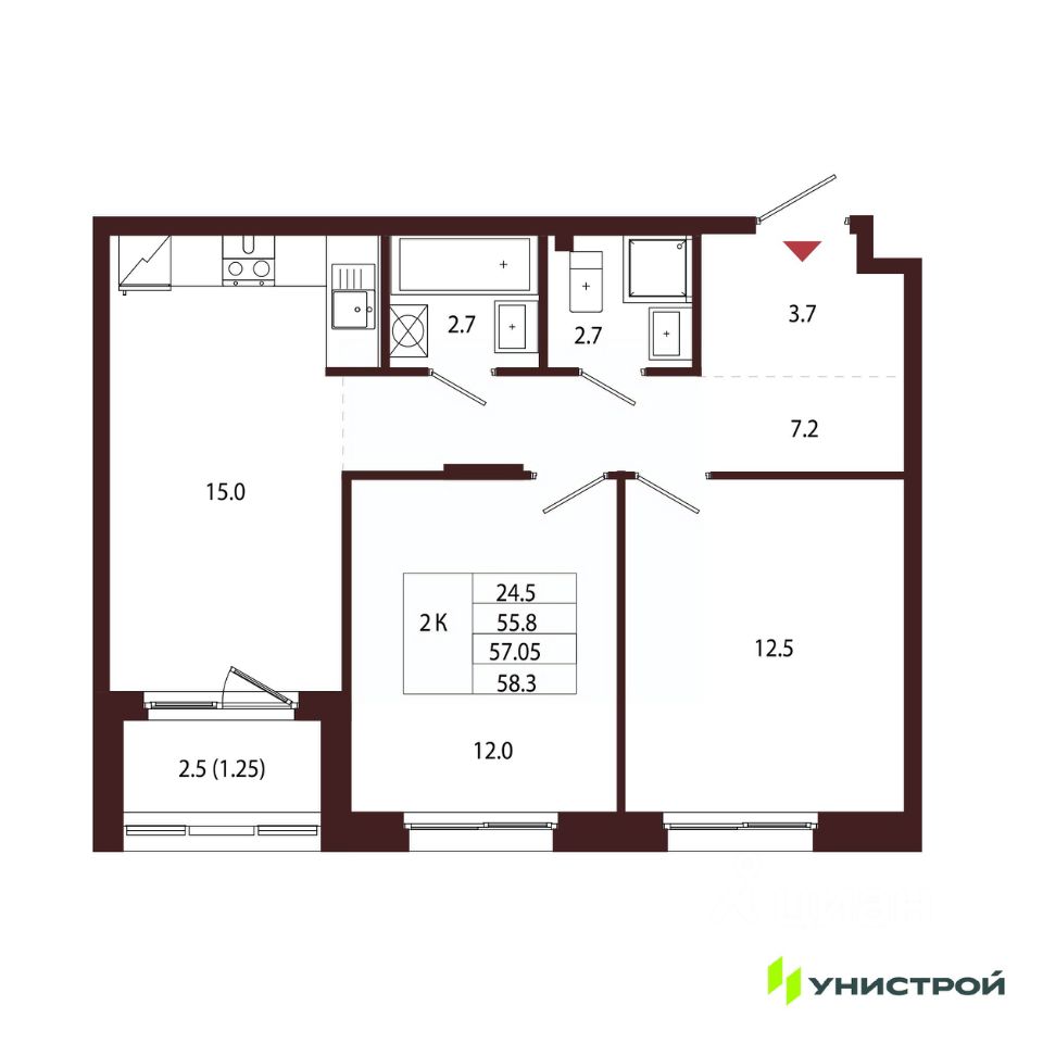 Общая площадь57,05 м2