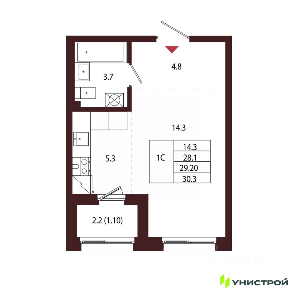 Общая площадь29,2 м2
