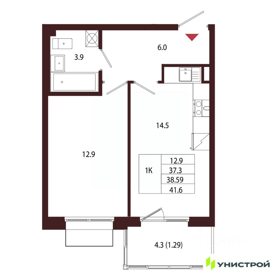 Общая площадь38,59 м2