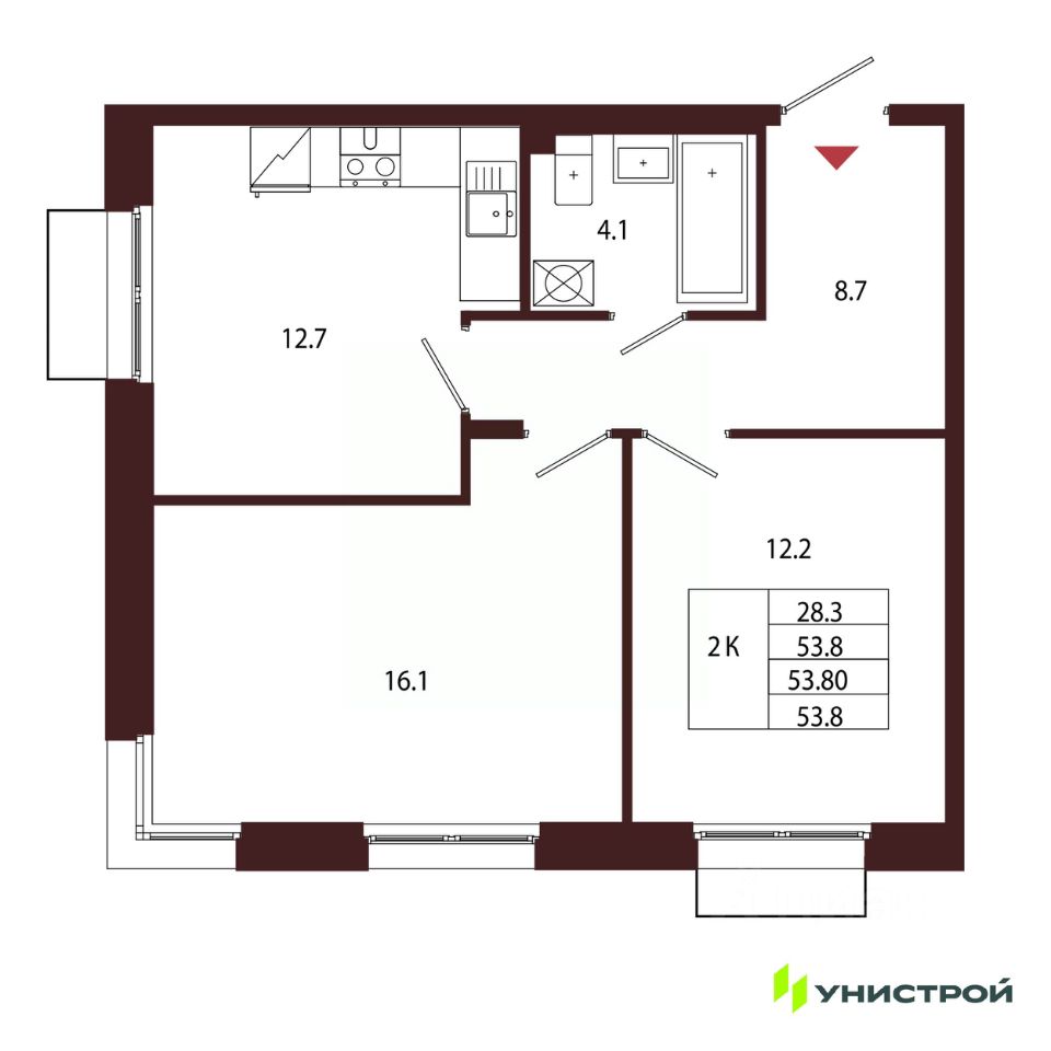 Общая площадь53,8 м2