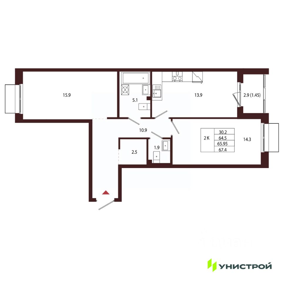 Общая площадь65,95 м2