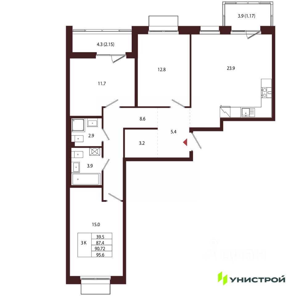 Общая площадь90,72 м2