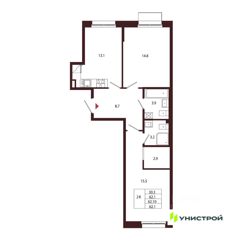 Общая площадь62,1 м2