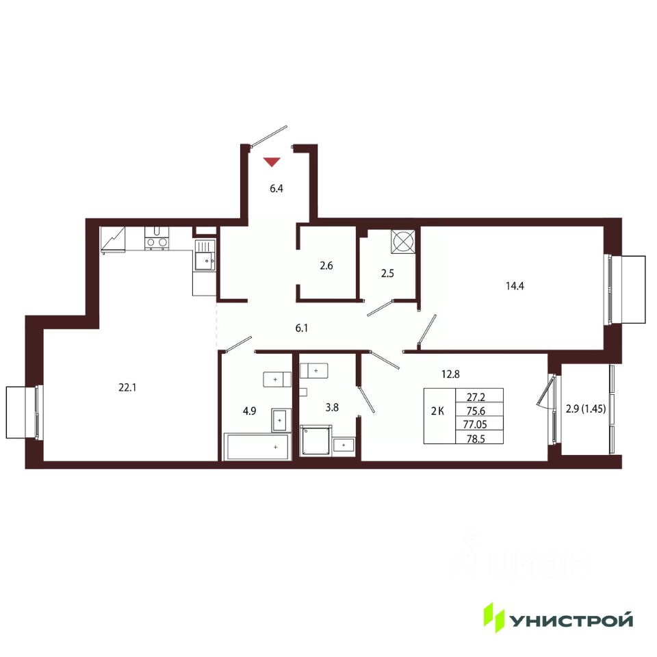 Общая площадь77,05 м2