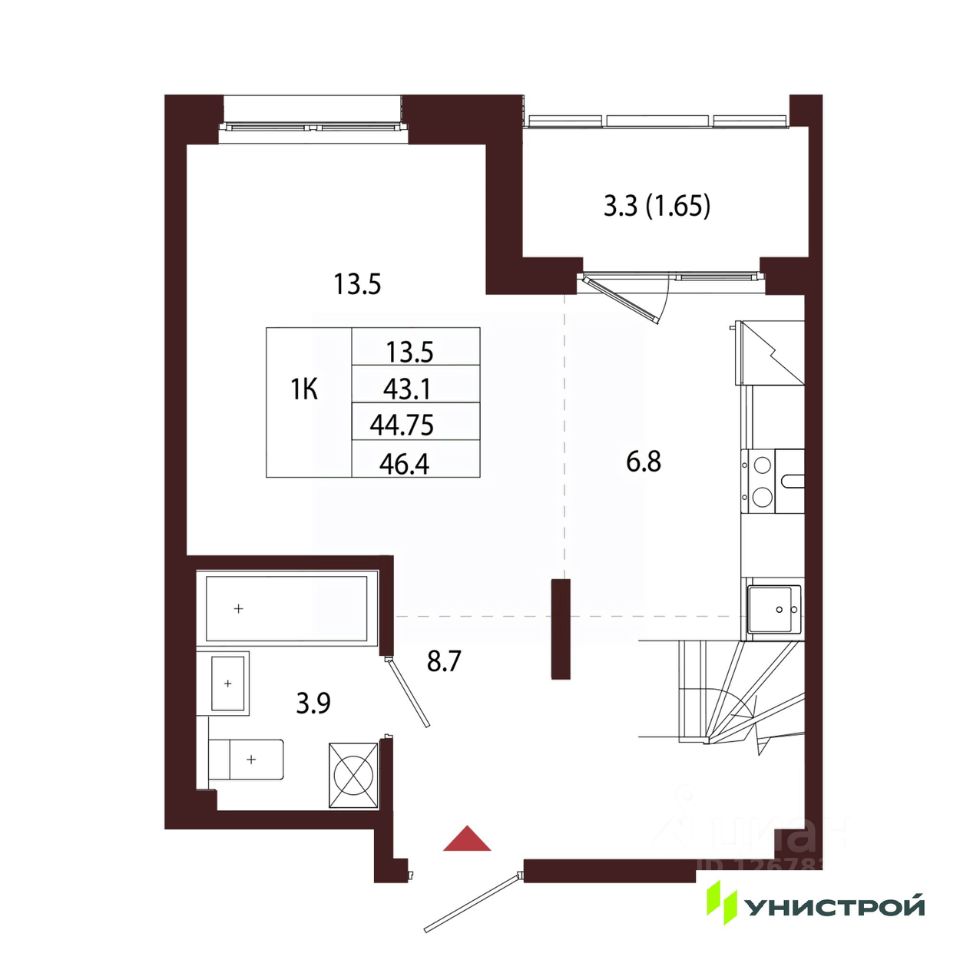 Общая площадь44,75 м2