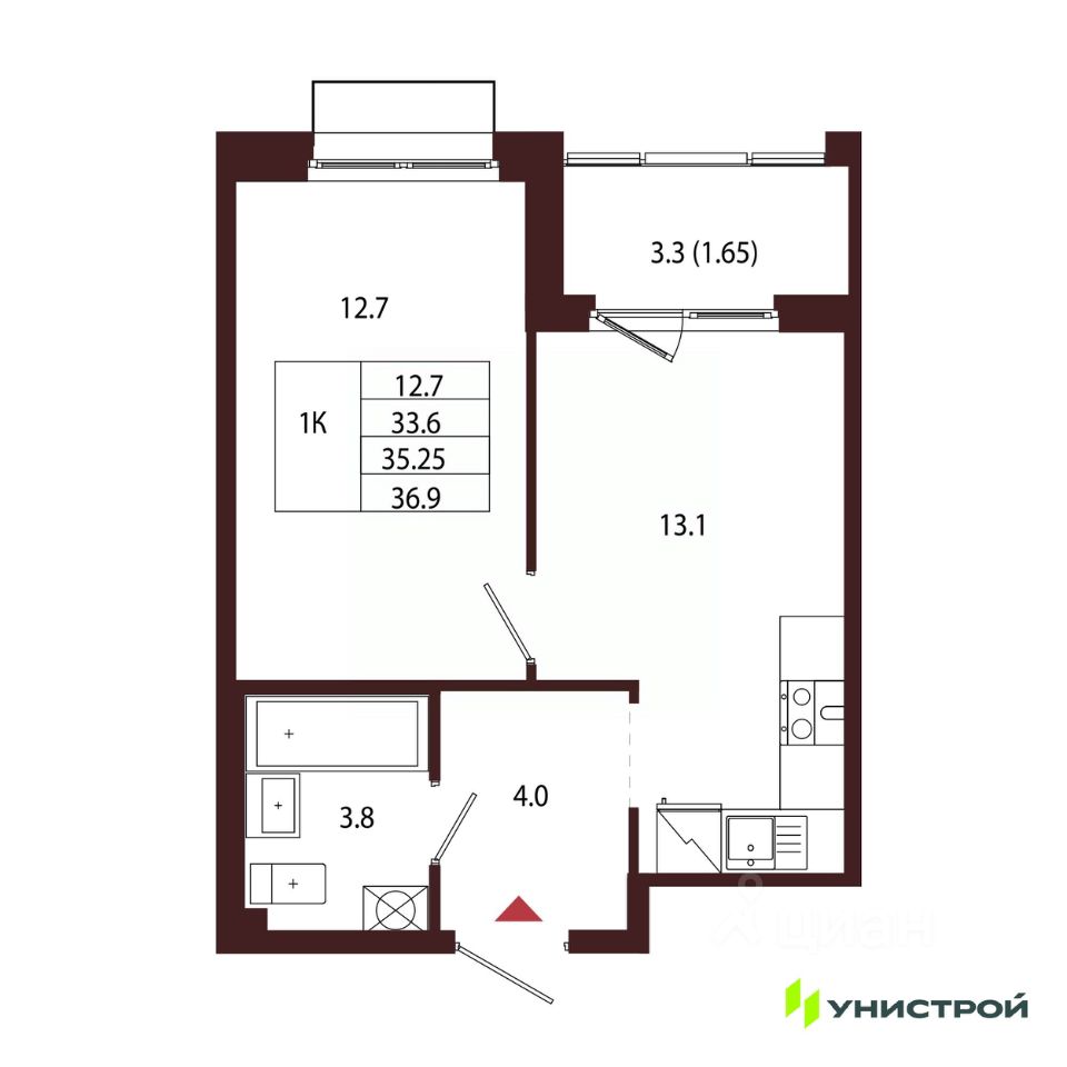 Общая площадь35,25 м2