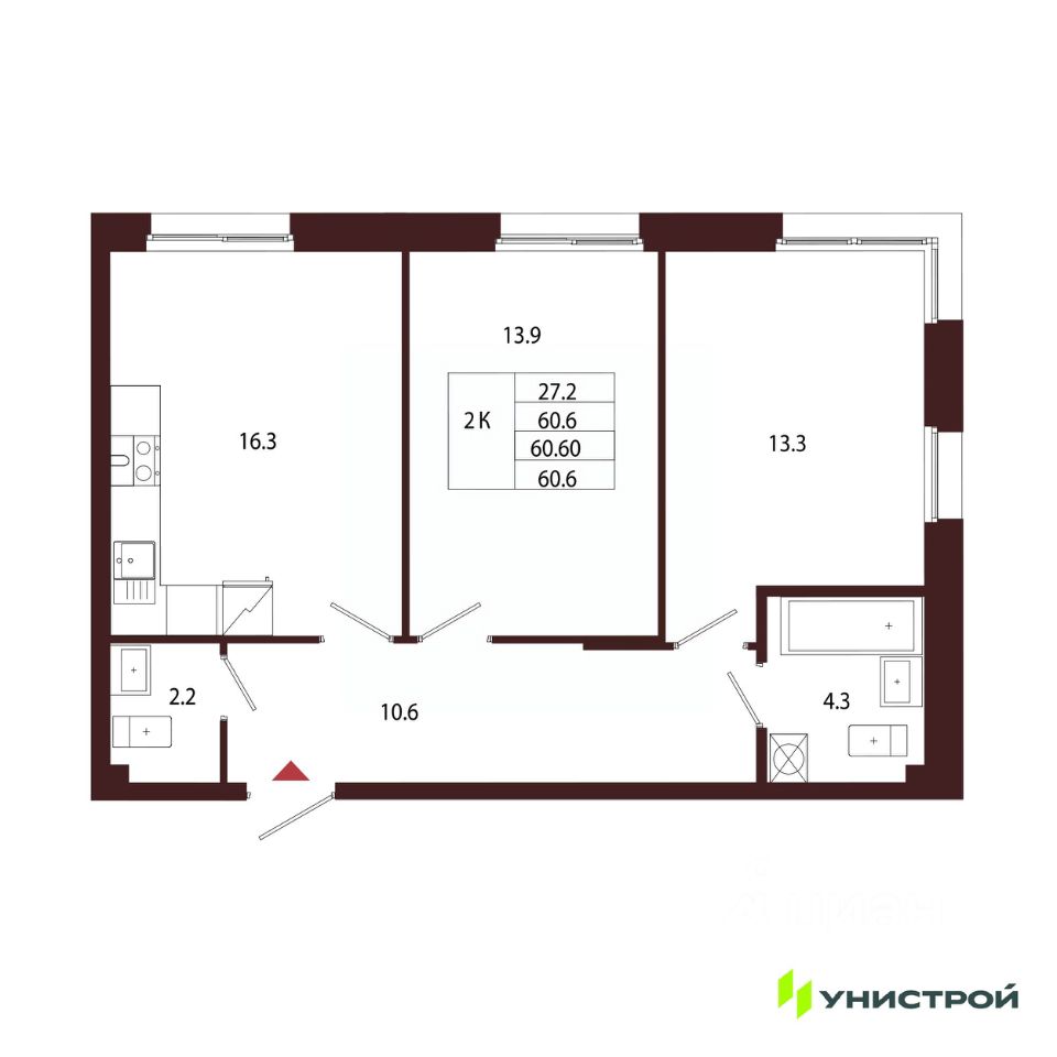 Общая площадь60,6 м2