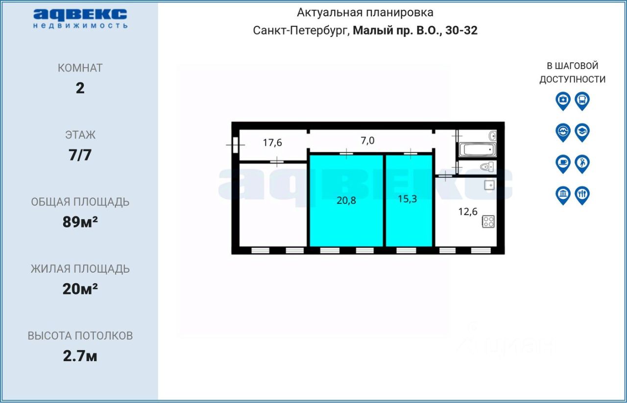 продам комнату, проспект Малый Васильевского острова, 308 200 000 ₽