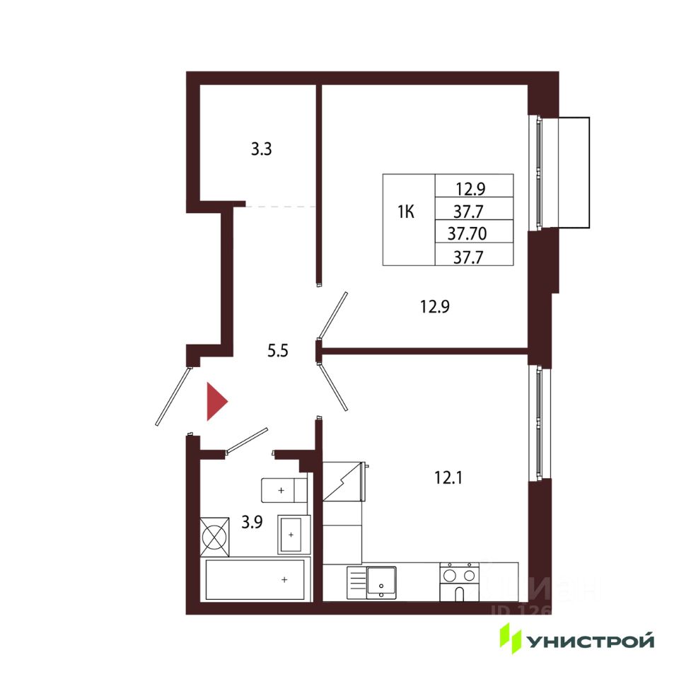Общая площадь37,7 м2