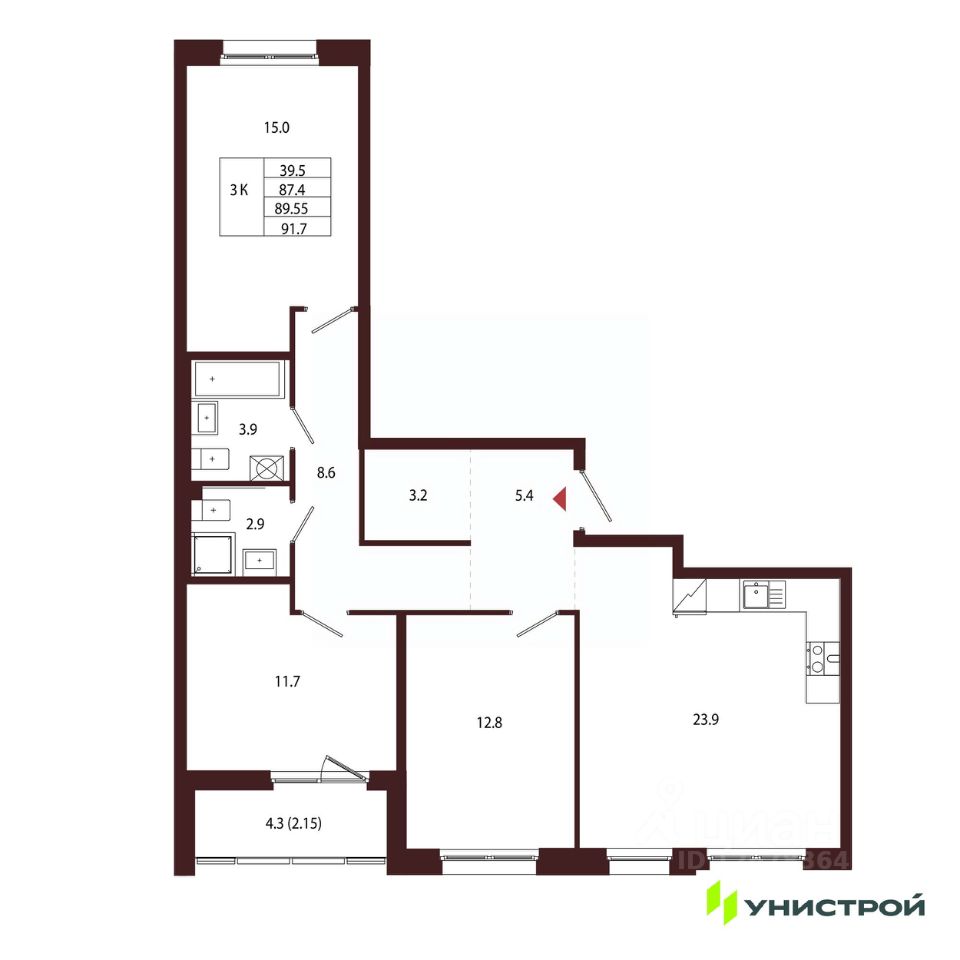 Общая площадь89,55 м2
