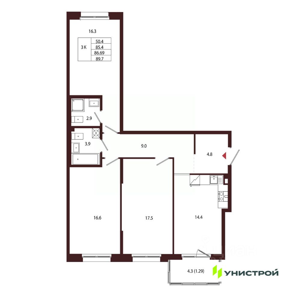 Общая площадь86,69 м2