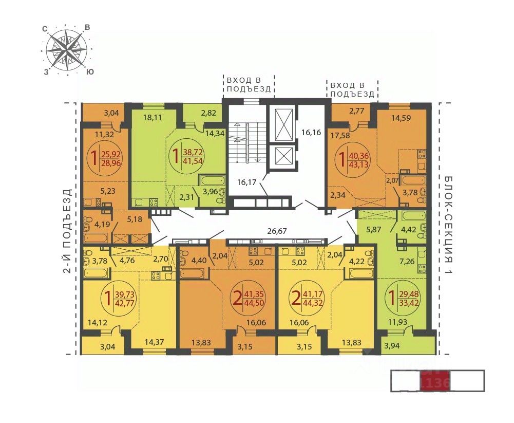 Общая площадь42,77 м2