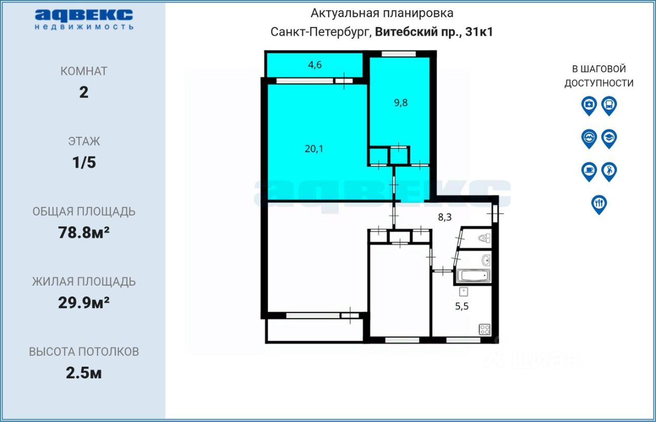 ID: 1787874 В продаже ДВЕ комнаты в 4х комнатной квартире по адресу: СПб, Витебский пр-кт, д. 31, к. 1. Квартира расположена на 1 этаже пятиэтажного дома. Дом панельный 1-507 серии, железобетонные перекрытия. Комнаты ИЗОЛИРОВАННЫЕ. Площадь комнат 20.1 кв. м и 9.8 кв. м. Из БОЛЬШОЙ светлой комнаты выход на застекленную ЛОДЖИЮ, площадью 4,6 кв. м. В каждой комнате есть свой ВСТРОЕННЫЙ ШКАФ. Вход в комнаты из СВОЕЙ ПРИХОЖЕЙ. Площадь кухни 5.5 кв. м. Окна из кухни выходят во двор. Раздельный санузел. Ванная. Площадь общей прихожей 8,3 кв. м. В квартире ещё один собственник двух аналогичных комнат. Около дома магазины и автобусная остановка. Документы проверены. Один взрослый собственник. Возможен торг! Звоните, покажу в удобное ДЛЯ ВАС время.