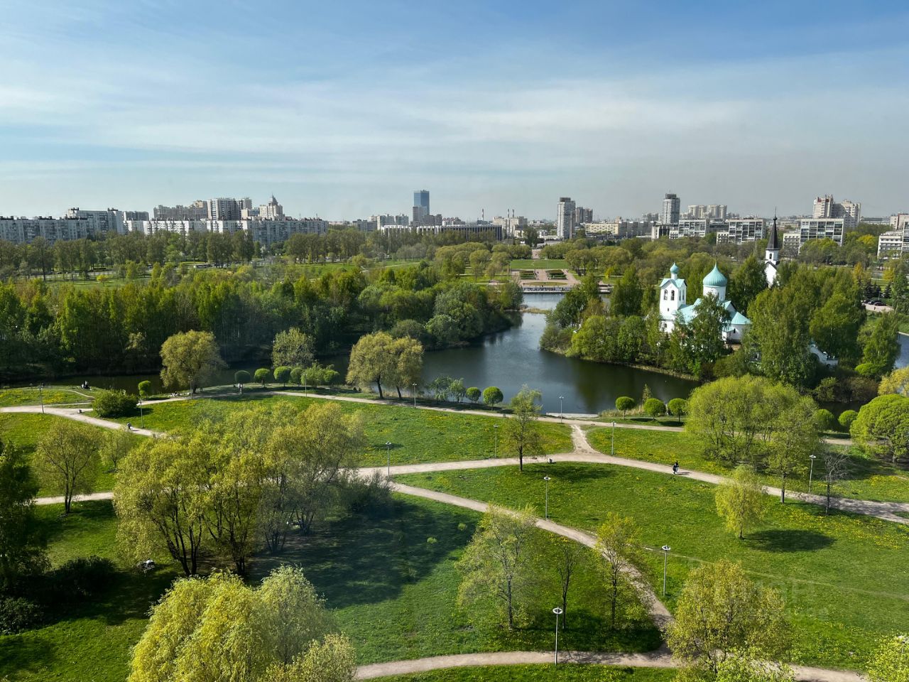 Вид из окна на зеленый променад и Пулковский парк Героев, который располагается в 2 минутах пешком от дома (как и детский сад и школа).