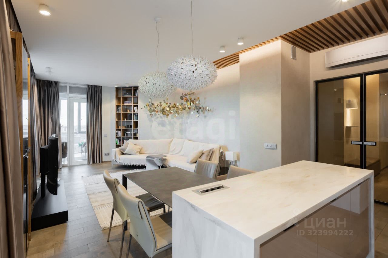В квартире сделан дизайнерский ремонт, вся техника, мебель и предметы интерьера остаются новому покупателю. В квартире установлена система кондиционирования в каждой спальни и в кухне-гостиной Окна во всех помещения панорамные Высота потолков 3 метра Кухонный гарнитур и техника на кухне из Италии, итальянского производства. Более подробно о дизайнерских и технических особенностях квартиры, готовы Вам рассказать по телефону либо лично на объекте.